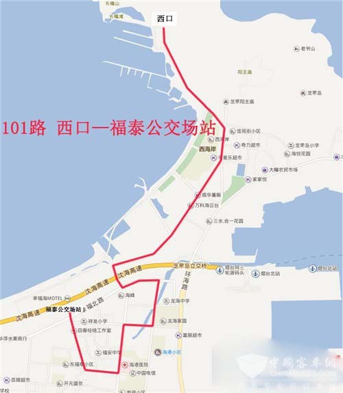 烟台西口村位于芝罘岛西侧,依山傍海,属于交通末端,加之几年前原有公交场站被收回利用公交线路撤出之后,该区域居民的出行非常不便。近年来,随着西海岸的开发,周边西海岸、万科海云台、万科青年特区、三水合一小区等居民区纷纷建成入住,百姓对公交线路的需求越来越强烈。为解决上述区域百姓出行问题,烟台公交集团在深入勘察调研的基础上,经上级主管部门同意,定于11月26日开通福泰公交场站至西口的101路微循环公交线路。