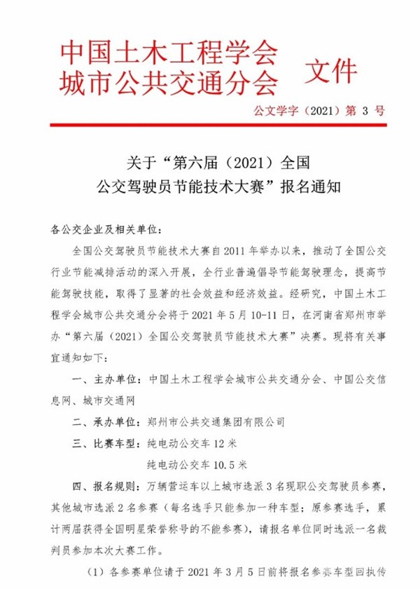 关于“第六届(2021)全国公交驾驶员节能技术大赛”报名通知
