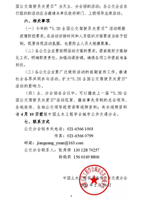 (四)各地会场:各地公交企业有条件的应当自行组织5.20当天活动。会场的主办单位统一标注为:“中国土木工程学会城市公共交通分会”。