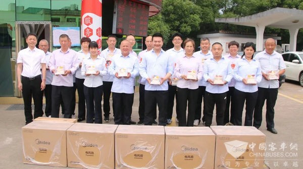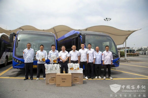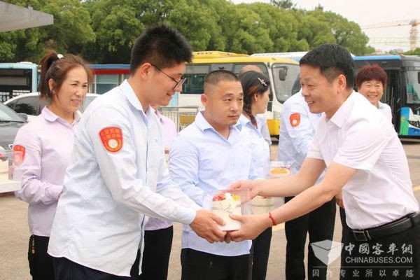 金华公交总经理洪刚锋,纪委书记、工会主席徐敏等班子成员分赴各大公交场站,为公交驿站送上爱心物资,也为五月生日的公交驾驶员送上“惊喜”生日礼物。