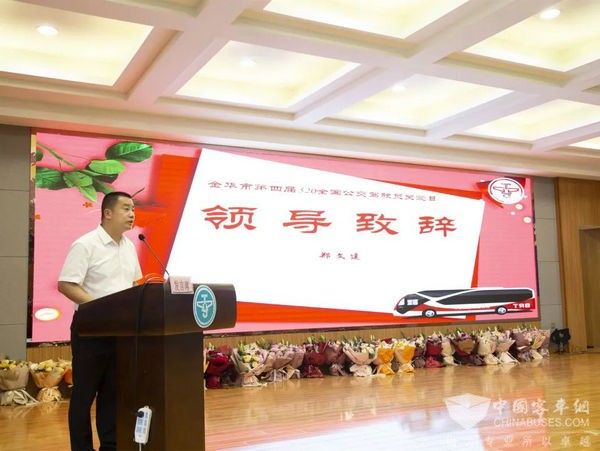 郑文建向参会领导表示热烈欢迎,向全体公交驾驶员致以节日的问候,并感谢社会各界给予金华公交发展的关心与支持。金华公交也会始终保持昂扬奋进的信心决心,接续传承为公为民的家国情怀,奋力打造富有时代特色的公交标志性成果。