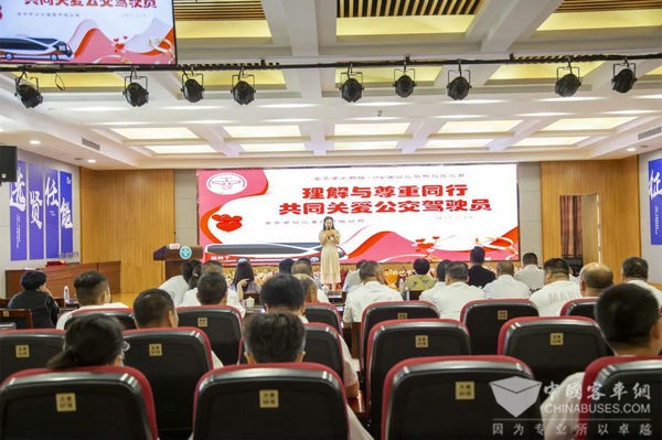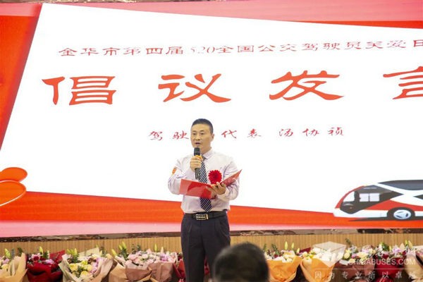 驾驶员代表汤协祯发出关爱公交驾驶员倡议,以爱之名,温暖同行,共建和谐公交,共创文明之城。