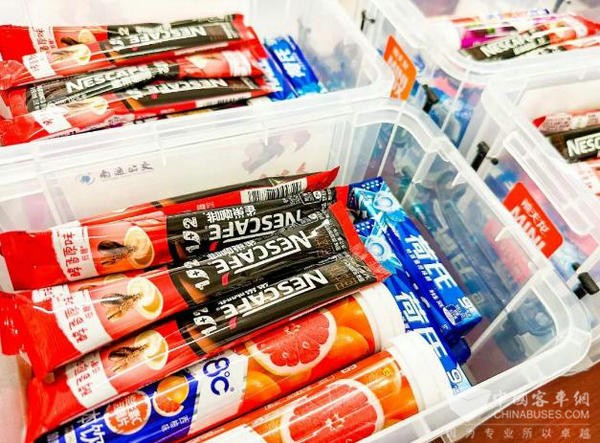 本次活动选定的4个站点均有郊区线路停靠,相较于市区内的公交线路,郊区线路大多线路更长、路况也更为复杂,驾驶员日常工作十分辛苦。为增强公交驾驶员的工作获得感和幸福感,慰问人员来到各个站点,将准备好的速溶咖啡、泡腾片、薄荷糖等提神醒脑物资分发到职工手中,并将余留物资收入收纳箱放置站亭内,供驾驶员们在需要时取用。同时管理人员围绕夏季行车中易出现的疲劳、困倦、腹泻、中暑等事项与驾驶员面对面进行一一叮嘱,进一步提高驾驶员安全行车意识。