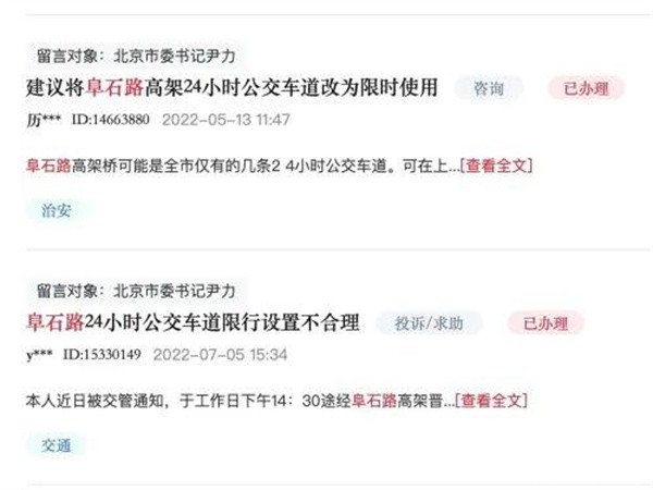 人民网“领导留言板”市民建议调整阜石路24小时公交车道/截图
