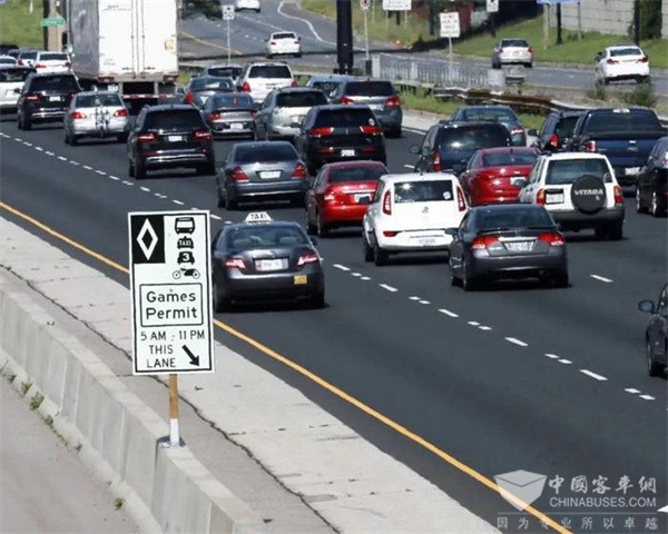 多伦多的HOV(高承载车道)车道/刘岱宗提供