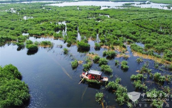 白洋淀“水上巴士”采用清洁能源,对生态环境影响降到最低。