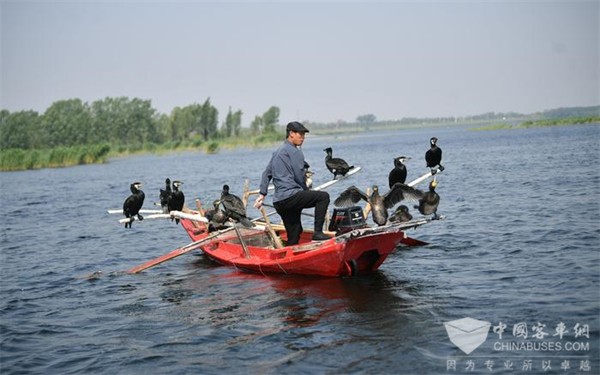 游客体验小木船生态游时,还可以欣赏到传统渔业的“鸬鹚捕鱼”表演。