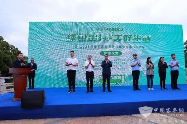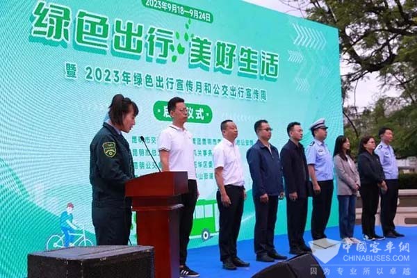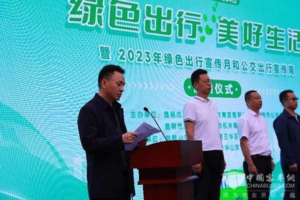 上午10点30分,2023年“绿色出行 美好生活”绿色出行宣传月和公交出行宣传周系列活动启动日正式开始,启动仪式上,交通运输局副局长王星云同志致辞,他说党的十八大以来,昆明市深入贯彻习近平生态文明思想,深入贯彻落实习近平总书记考察云南的重要讲话精神,始终把生态文明建设摆在事关全局的重要位置来抓,深入开展公交都市”和“绿色出行”创建,为打造“六个春城”当好交通先行官,为全市经济社会发展提供了重要支撑。经过多年努力,昆明市被列为全国公交都市示范市和绿色出行创建考核评价达标城市。以“轨道交通和快速公交为骨干、常规公交为主体,出租汽车为补充、慢行交通为延伸”的一体化公交都市体系已基本形成。轨道运营总里程165.85公里,设置车站103站,日均客流70余万人,逐步成为城市客运骨干。中心城区公交线网密度达2.27公里/平方公里。公交站点500米覆盖率达100%,日均客运量90余万,与103个地铁站基本实现了换乘接驳,城市公共交通绿色出行服务保障能力持续增强。下一步,昆明市交通运输局将按照市委十二届四次全会提出的:加快推动生态优先绿色发展,着力打造宜人宜居的“高原明珠、绿美春城”工作要求,同全社会共同努力,进一步完善公交基础设施和配套设施,推动多元公交深度融合,倾听市民建议,改进公交服务供给,提供公平、优质、安全的城市公交服务,助力昆明打造“六个春城”。