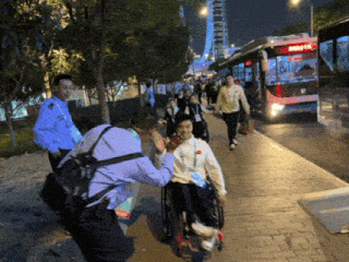 昨天凌晨3点半,离返就已进入高峰,而现场管理人员早已在发车区等待大家的到来,帮助轮椅运动员上车,主动搬运随身行李,让杭州的这段旅途充满温馨与便利。