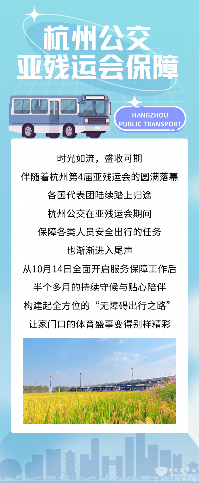 零延误的准时准点,心连心的温情服务。让杭州公交为亚残运会留下的“第一印象”和“最终回忆”,将始终印记在这个金秋十月。杭州公交也将在总结用好此次亚残运会保障工作的经验基础上,实现重大事件保障更全面、服务更细致、出行更便捷!