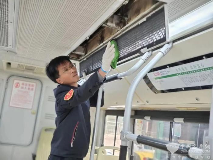 在位于郑州市管城区的石化路公交站院内,郑州公交B15路驾驶员张伟锋一边清洁着空调滤网,一边介绍着遭遇降温天气后,公交车辆如何为广大乘客做好温暖出行保障。
