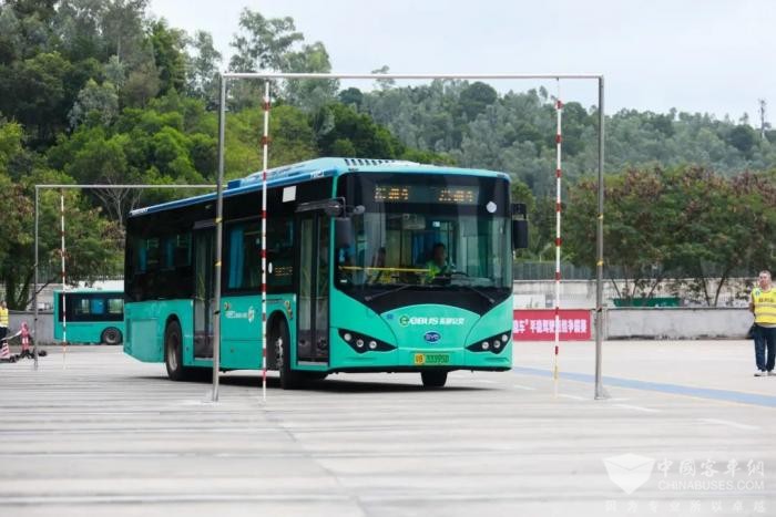 本次比赛用车选用10.05米比亚迪K8纯电动公共汽车,所有参赛选手赛前现场抽签确定了比赛出场顺序。