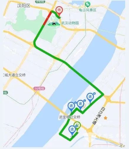 据了解,该线路单程长17公里,全线计划运行时间为45分钟。试运行期间配车3台,发车时间暂定为南郊小路9:00、9:30、10:00,武汉动物园15:00、15:30、16:00,票价5元,市民可现场购票。线路开通后,可极大方便白沙洲片区新力城、天赋滨江、新城阅璟台、美好长江首玺、建和世家、万科金色城市、长江鑫都、万象公寓、菁英城、锦绣城等小区居民前往武汉动物园游玩。线路走向:南郊路、丽水路、武金堤路、白沙四路、夹套河路、杨泗港大桥、梅林东路、文选路、江城大道、动物园路。