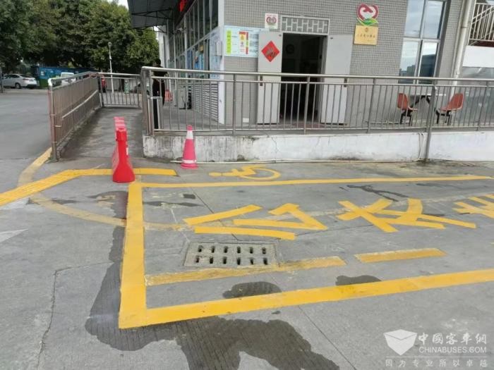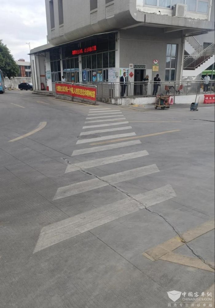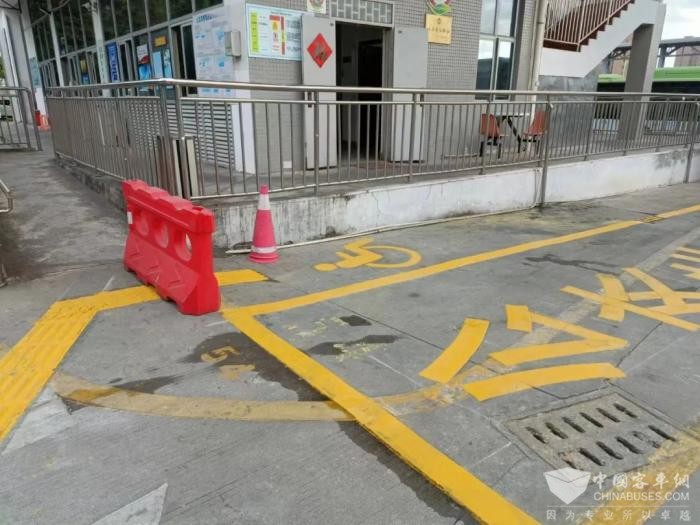 在场站进口处、特殊群体上客区等均增设有醒目的“爱心通道”标识,指引乘客安全乘坐公交。
