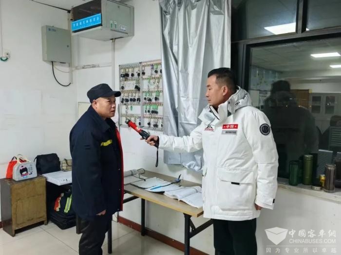 该公司经营一部。为保证第二天早上车辆的安全上线运营,以及市民的正常出行,一车队班子车成员立即启用了雨雪天气应急处置预案,车队长唐志伟对班子成员进行工作安排,要求班子成员要协助线路调度员督促驾驶员们做好车辆“三检”制度、落实岗前见面制度、消防设施、出车前叮嘱等工作,发现“不安全的车”和“不合格的人”,严格控制上线运营,从源头上消除各类安全隐患。他说:“岗前见面叮嘱制度要严格落实到位,酒精检测排查、精神状态要认真确认、车辆出车前的“三检”制度等程序一个都不能少......”