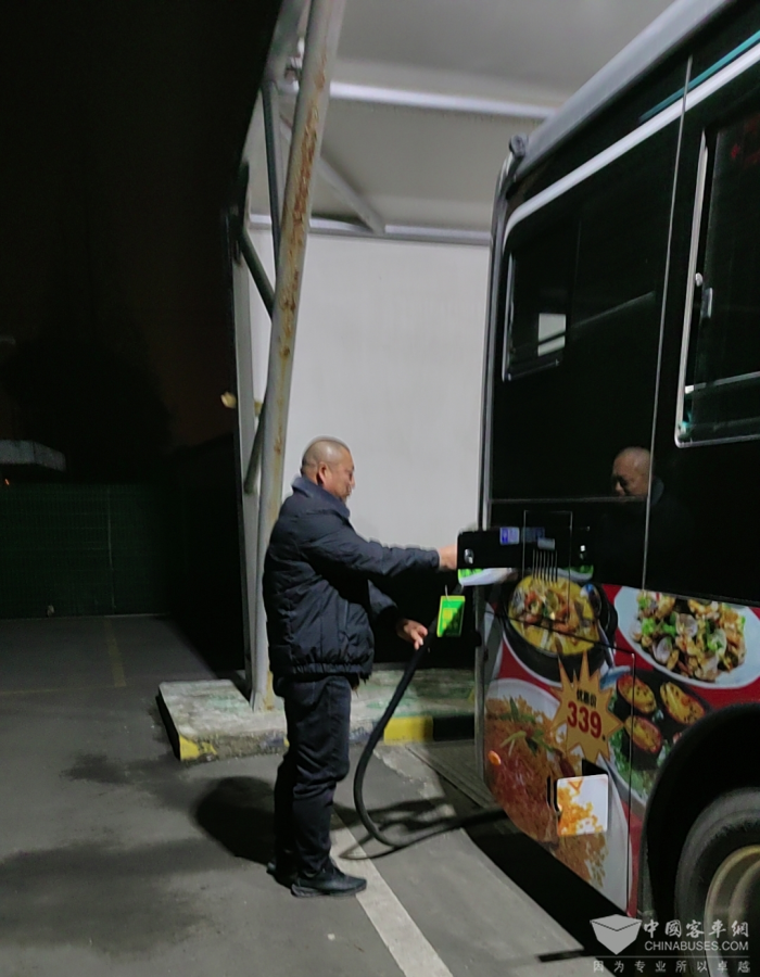 蔡燕宾师傅是一名公交移车工,每天的工作就是在夜晚将新能源公交车移到充电桩上,保证第二天所有公交线路的正常运营。这份工作看似简单,却需要在每个夜晚默默地辛勤付出。丽波湾公交场站内共有32辆新能源公交车,每天晚上,蔡师傅都需要将这些车辆从各自的停车地点驾驶到充电桩前,等待充电完成后,再将其移回原位,每天都要反复进行数十次,最多时甚至需要处理近40车次。为了确保工作能够按时完成,蔡师傅每次在上夜班前都会提前抵达丽波湾首末站。即使在恶劣的天气条件下,他也从不迟到。吃完晚饭后,他就会骑着电动车赶往公交首末站,开始他一天的工作。