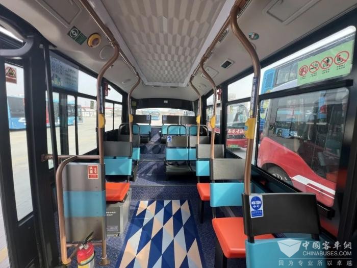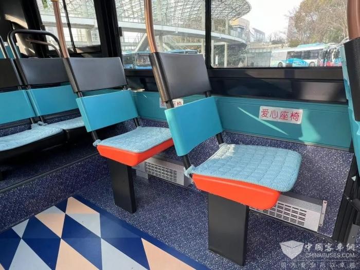 走进车厢会发现,“萌萌巴”其实一点都不“萌”,因车辆采用长轴距设计,为车内提供了更大的乘客站立区域,约2米的车辆内高也为乘客提供了宽敞的车内空间。车厢地板采用了焊接式优质防滑超强耐磨地板革,车厢内扶手杆与座椅采用贯通式整体设计,实现了整车扶手不落地,再加上座椅腿斜支撑设计,最大程度上释放了车厢底部空间,使车厢更加宽敞实用,给乘客带来更为安全、舒适的乘坐体验。