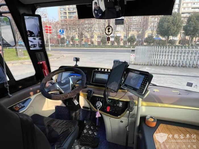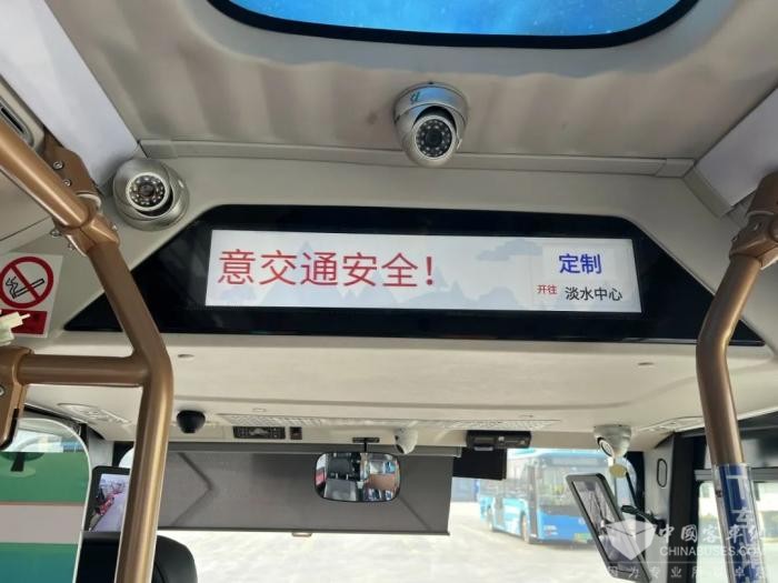 在动力及安全方面,车辆采用纯电驱动,充电1次可行驶约200公里(车载“三电”系统防护等级达到IP68,具备最高防尘防水功能),零排放、更环保;行驶过程中噪音极小,为乘客提供了更加安静舒适的乘坐环境。车辆中控屏为科技感满满的智能化电子集成屏幕,集成了车辆灯光控制、空调控制、多路视频显示及车辆信息显示等功能,还配备了360度环视系统、智能驾驶辅助系统、主动防御系统等多个安全行驶保障系统,可实现车道偏离、前车间距预警、防碰撞预警等功能。车辆还具备电机扭矩防溜坡功能,坡道起步更轻松。