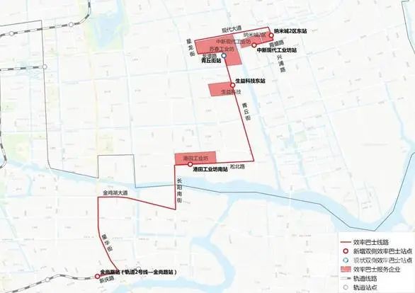4、“效率巴士”4号线:可在轨交2号线“金尚路”站进行无缝换乘,实现了生物港、新盛里、金光科技产业园等新建片区与轨交线路的接驳。
