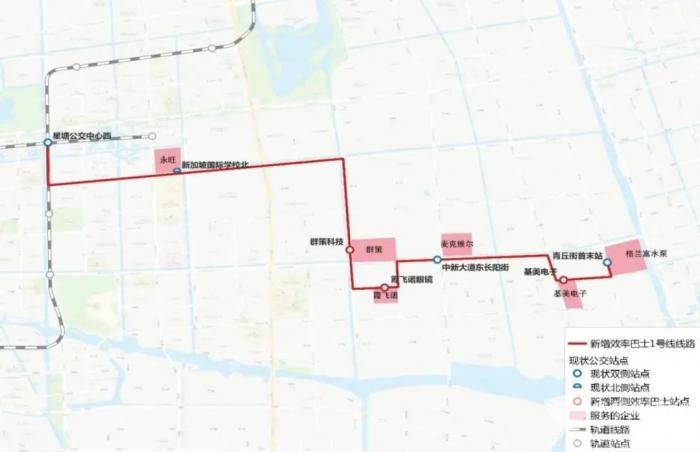 停靠站点:星塘公交中心西、新加坡国际学校北(北侧)、群策科技、霞飞诺眼镜、中新大道东长阳街、基美电子、青丘街首末站。