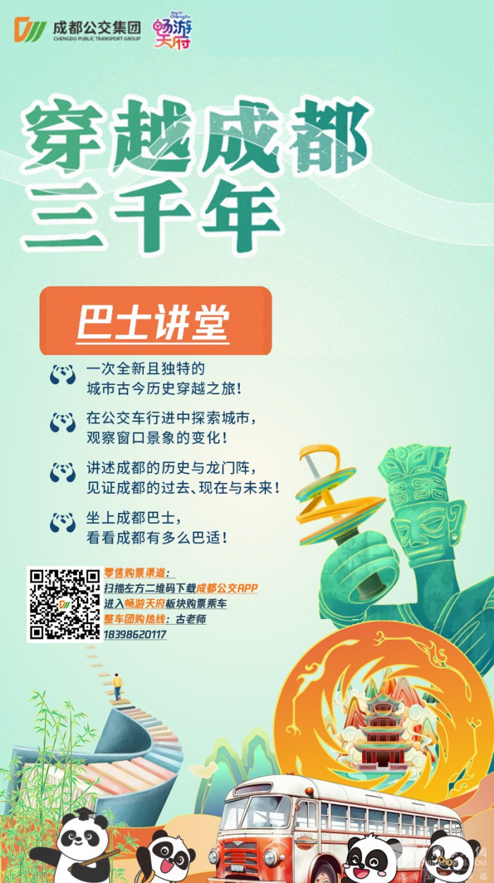 成都公交移动式主题学习空间“巴士讲堂”系列第一期“城市新中轴巴士讲堂”已和市民朋友正式见面啦,该线路以城市移动讲堂为载体,构建“公交+文旅+学习”新业态,通过将成都城市文化、记忆与地理坐标相融合,为成都在校学生、市民、游客提供了一个全新的移动研学体验。