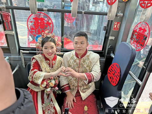 车号“1314”,线路牌为“520”,头车的车身是新人结婚照,6辆“红墩墩”公交车组成婚车车队,所有婚车均为低碳环保的新能源公交车。这是2023年12月12日发生在济南街头的一幕,网友惊呼“我想要这样的婚礼”,公交车变身浪漫婚车,氛围感拉满。