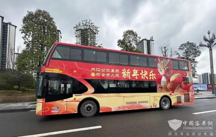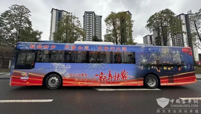 城市里流动的年味 内江龙年新春贺岁主题公交车正式投运