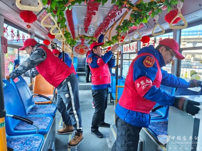 近日,211.222路党支部全体党员干部职工在龙之梦公交枢纽站开展清洁运营车辆、场区候车廊及站务室活动,打造年味公交。