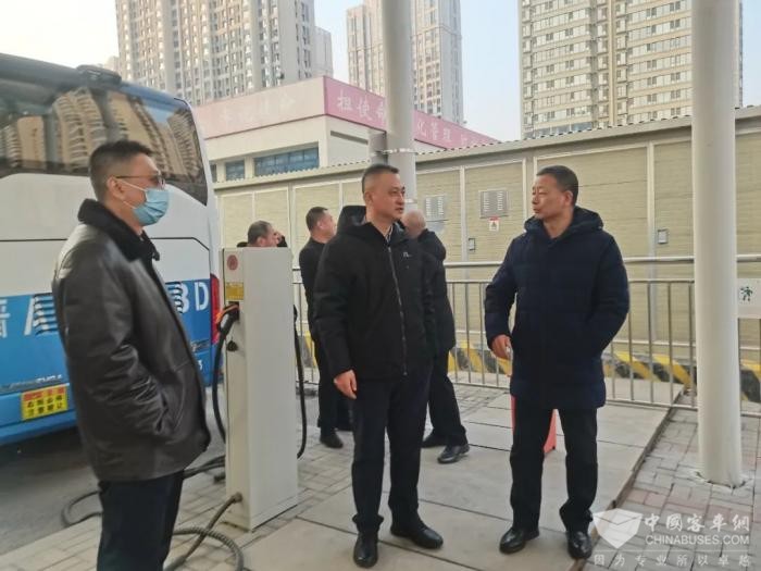 在充电站仔细查看了车辆充电管理状态,综安科有关人员对分公司充电安全管理进行了说明。赵凯强调,春节临近,各部门要高度重视做好安全生产,严格遵守安全操作规程,确保公交车场绝对安全。
