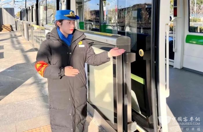 推行“友爱帮扶”!现代电车为乘客提供无障碍出行服务——2023年5月18日,一名坐轮椅的老年人乘坐有轨电车,站服员朱芳婷看见后主动上前,询问老人目的地,将轮椅推上电车。她也一路陪同老人坐车到目的地,并帮助老人下车出站,让老人倍感温暖。