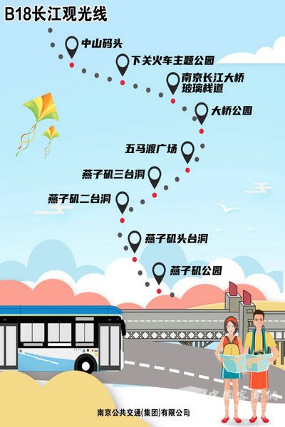 沿途站点:燕子矶头台洞、燕子矶二台洞、燕子矶三台洞、五马渡、上元门、南堡公园西、下关火车主题公园(临时新设)、中山码头北。