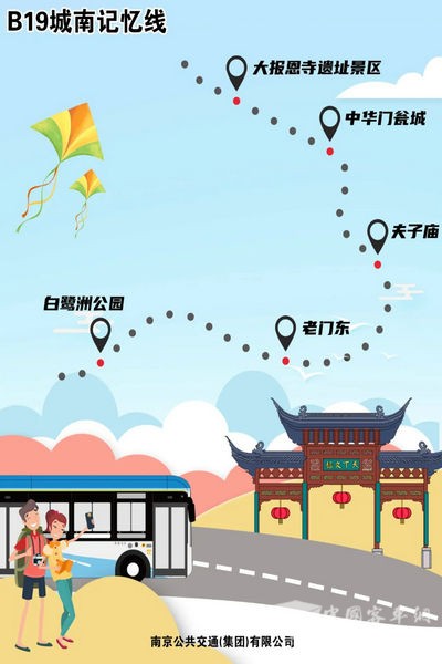沿途站点:中华门地铁站(路南上客)、大报恩寺遗址公园、中华门城堡、市第一医院、琵琶巷、武定门、双桥门西、应天大街·养虎巷、应天大街·雨花路、中华门地铁站(路北下客)。