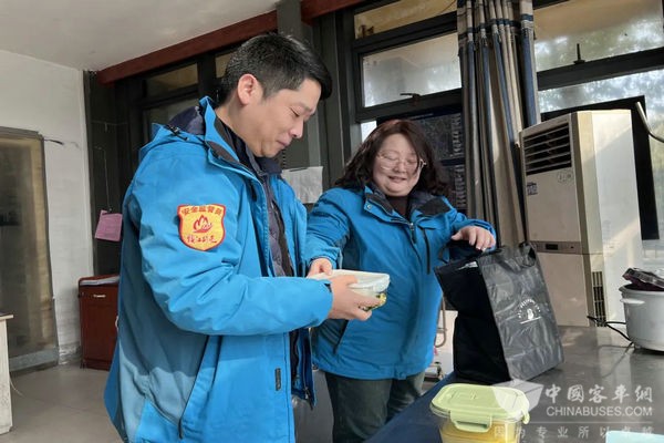 今年春节,他们依然是在“分头工作”中“擦肩而过”。中午11点多,高晓妹驾驶15路公交车缓缓驶入白娘子园公交站,完成了上午的工作任务。此时朱红宝已经在站房等候10多分钟了,看到妻子回来,他立刻就从站房走出来,招呼着让她停好车。车刚停稳,他就上车开始帮着车内清洁,同时说道:“午饭给你热好了,趁着热,抓紧吃吧。”对此,高晓妹虽已经习惯,可还是忍不住脸上笑开了花:“谢谢,对了,这两天路上人不多但车多,你慢点开车,注意安全啊!”今年,分别是朱红宝和高晓妹进入镇江公交工作的第28年和第17年,这是他们第8次一起在公交岗位上度过新春佳节。如今,两人在生活中相濡以沫,在工作中相互扶持。他们认为,爱的方式有千万种,有一种爱是“并肩努力、共同坚守”。他们觉得,春节里和家人团聚很重要,但是一起上下班,把乘客送到目的地也是一种幸福。