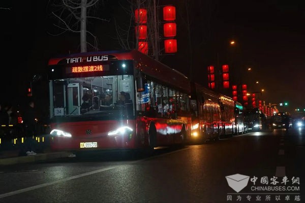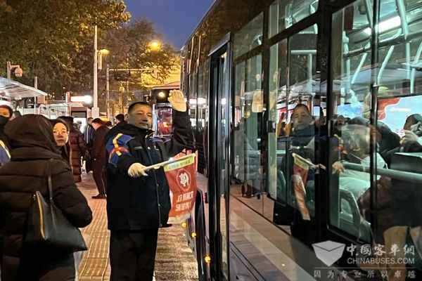 2条公交摆渡线路,来来去去、往复不停运送乘客。“今晚是除夕夜,我们一定站好节前最后一班岗”。