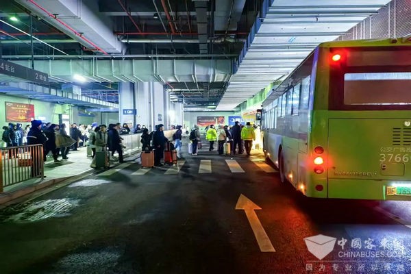随着车辆停稳,车门开启,乘客陆续下车,驾驶员也守候在行李舱门处协助乘客领取行李。在车辆启动安全离站后,线长继续指挥下一台车进站,周而复始、直至清晨。