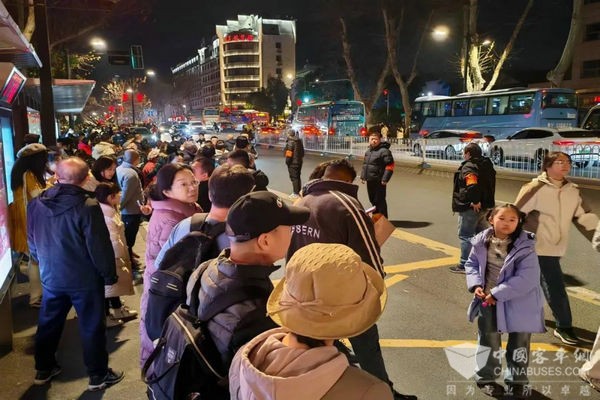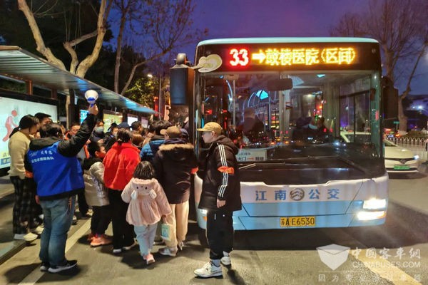 华灯点点,万家团圆,秦淮灯彩甲天下。夫子庙、白鹭洲公园、老门东的灯会,市民、游客趋之若鹜。在市第一医院公交车站,公交集团第四客运公司安排了20余名志愿者在现场值守。根据客流监测,往鼓楼方向的客流较大,南京公交集团临时增开了武定门至鼓楼的33路区间线路,不到3分钟就有一辆车。在志愿者的引导下,市民乘车较为顺畅。