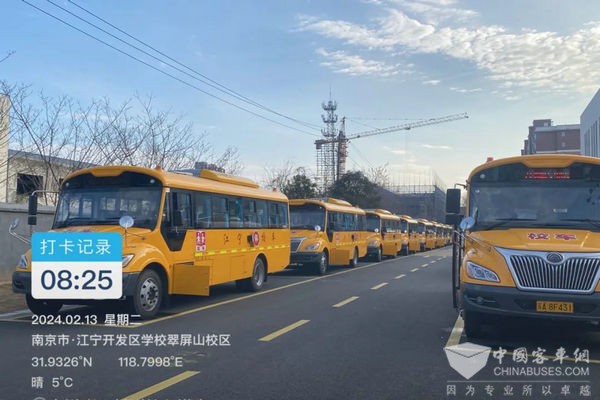 寒假接近尾声,为给乘车学生在新学期提供温馨舒适的车厢环境和安全优质的乘车服务,南京江宁公交集团校车公司自2月1日起,对全区校车进行全面的安全检查、卫生清洁和消毒通风等车辆整备工作,为开学做足准备,筑牢校车安全防护墙,确保新学期接送任务圆满完成。