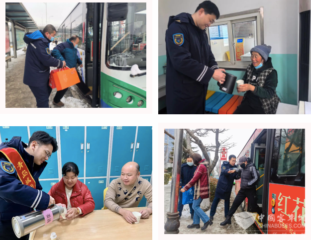 为保障市民温暖出行,在做好运营的同时,温馨巴士公司严把服务质量,有条件的线路,驾驶员做好“三提前”工作,即提前进站、提前上客、提前服务。提前发动预热车辆,确保车辆正常启动,确保车辆暖风正常,努力为乘客提供温暖的乘车环境。同时,温馨巴士公司志愿者还来到部分客流量大的公交站点,疏导车辆有序进出站、引导乘客慢上慢下,温馨帮扶特需乘客、帮助“趴窝”私家车推车等。为了让在风雪中等待的乘客有个歇脚的地方,温馨巴士“爱心驿站”启动温暖服务,配备热水、充电宝等便民设施,还有志愿者“暖心播报”,能让乘客朋友随时关注到车辆信息。