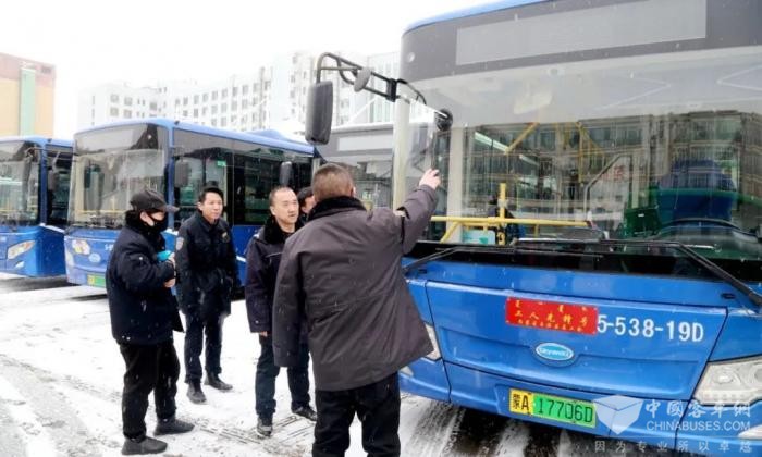 各营运公司科学调度、安全叮嘱,保障雪天各项应急措施落实到位。行政人员预先组织积雪清扫力量,铺设防滑垫、预撒融雪剂,降雪期间及时清理场站积雪,确保场站内人员安全。驾驶员提前到岗,清扫车身及挡风玻璃积雪,认真检查车辆暖风系统,并对车辆进行预热,对灯光、雨刷器、车辆制动系统进行重点检查。