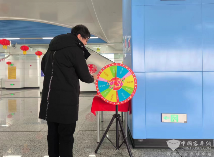 地铁3号线开发区站工作人员自腊月二十三小年开始,每日会挑选幸运乘客送上新春祝福和小礼物,不仅有工作人员手绘的祝福卡片、福字,还有手工艺品,希望和乘客一起开启2024年的美好瞬间。正月初一一大早,地铁13号线海湾高中站为属龙的乘客准备了一份专属惊喜——“幸运龙转盘”活动,工作人员还为“幸运龙宝们”准备了精美盲盒、书签、精美玩偶等小礼品,活动现场热闹非凡,属龙的乘客都踊跃参与其中。有幸参与活动的乘客都感到十分开心,纷纷表示大连地铁真的很暖心,希望今后可以多开展类似活动,让更多人感受到春节出行的喜乐氛围和来自大连地铁的温暖。