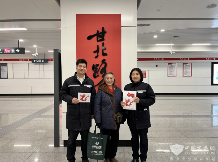在春节送出祝福的同时,我们也收到了一份来自乘客郭奶奶的祝福。在2023年12月24日,乘客郭奶奶的孙子走失,来到地铁5号线甘北路站求助,最终在地铁工作人员的多方联系下找到。孩子找到后,郭奶奶感激的心情却不能平复,2024年1月13日,她亲手为工作人员送来了锦旗。虽然工作人员再三表示帮乘客之所需也是自己的工作职责,但郭奶奶却红了眼眶:“孩子是全家人的心头肉,丢了如何向家人交代,你们的帮助我一辈子都忘不了。”临近春节,郭奶奶再次来到甘北路站,送来了自己的剪纸作品,原来郭奶奶是一位剪纸艺术家。她笑着对工作人员说:“这些都是我亲手剪的,我就这点手艺,略表心意。祝地铁员工2024年工作顺利,身体健康!”