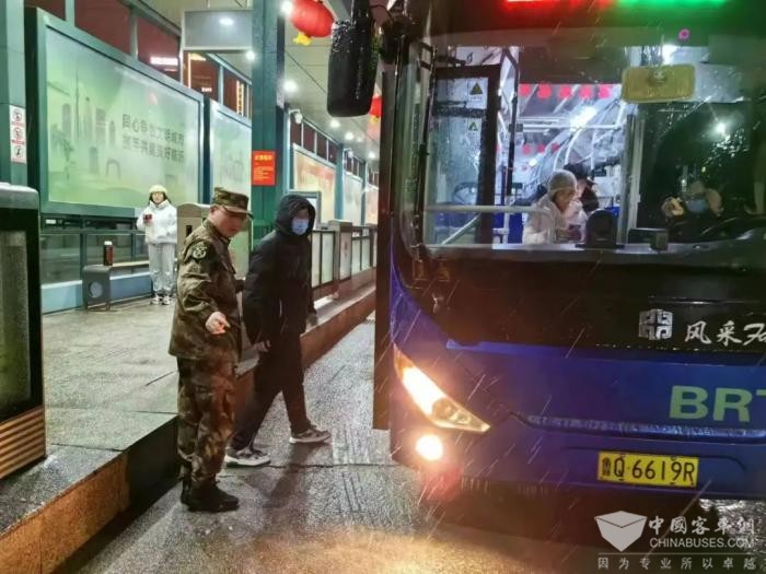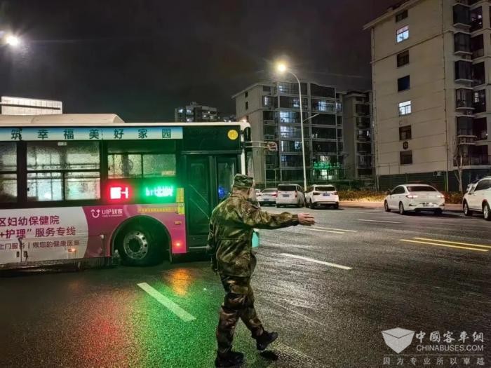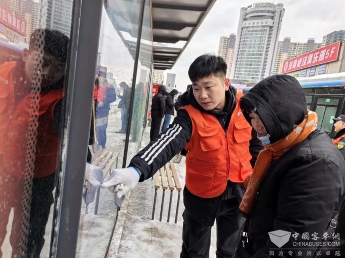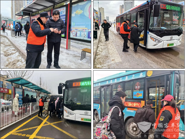 恶劣天气下部分公交线路实施延时服务,按照“高铁不到站,公交不收车”的原则,安排管理人员、驾驶员和志愿服务人员24小时待命,全力做好高铁站乘客接驳工作。