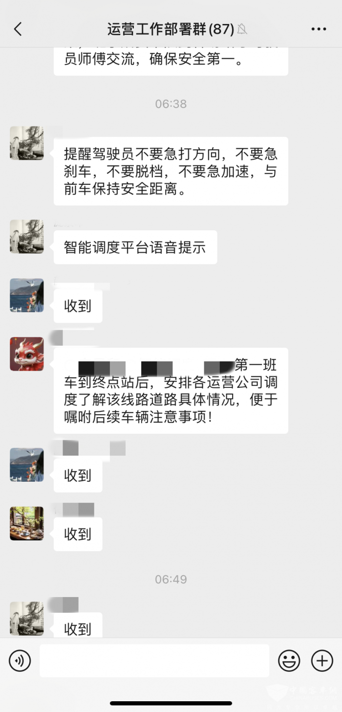 运营小组提前发布雨雪天气安全行车操作规范,调度人员通过车载语音设备及时发送安全行车提示,实时关注运营情况。