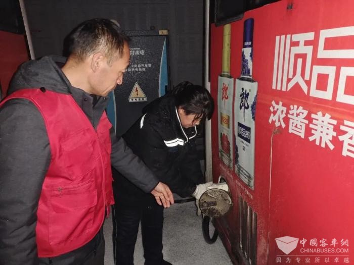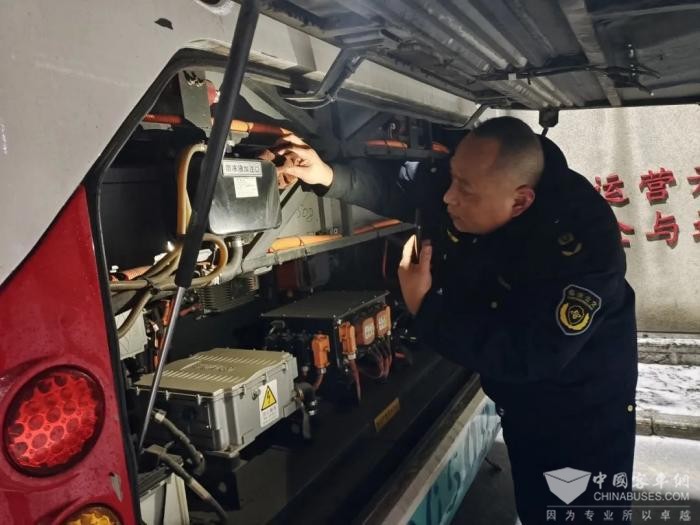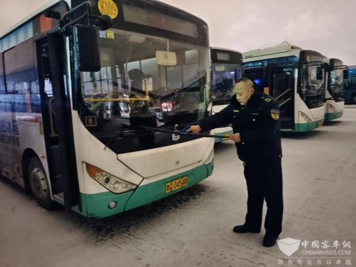 2024年2月21日凌晨4点多,驾驶员提前到岗,开启车辆暖风对车厢进行预热,同时严格落实车辆“三检”工作制度,检查刹车制动、灯光、雨刮器等安全设施,清除积雪和车窗冰霜,为市民营造温暖舒适车厢环境,全力保障按点发车。