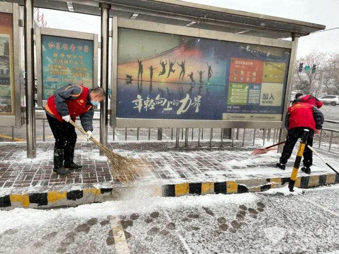 市公交集团第五分公司第一时间组织各路队对线路沿线站台开展扫雪工作,并对充电桩和停车区域进行了清理,保障运营车辆正常充电和停放安全,为一线运营做好后勤保障工作。