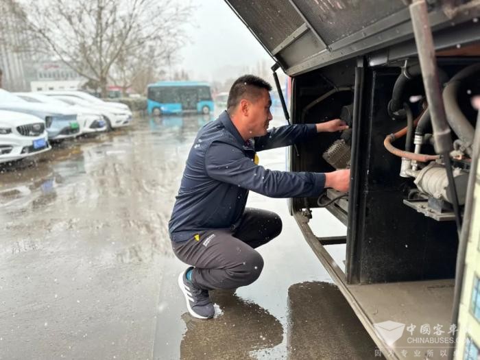 “降雪天气,道路湿滑,控制车速,一定要慢,发现有结冰路段,千万不能急刹车,要提前判断采取措施”“注意观察路面情况,人多车流量大的路段一定注意放慢车速,多观察”“路口、人行横道先观察再通行”......甄志、伏广省等车长提前到岗,有条不紊地做好车辆出车前的例保检查等各项准备工作,认真听着队长孙志勇的叮嘱。