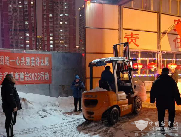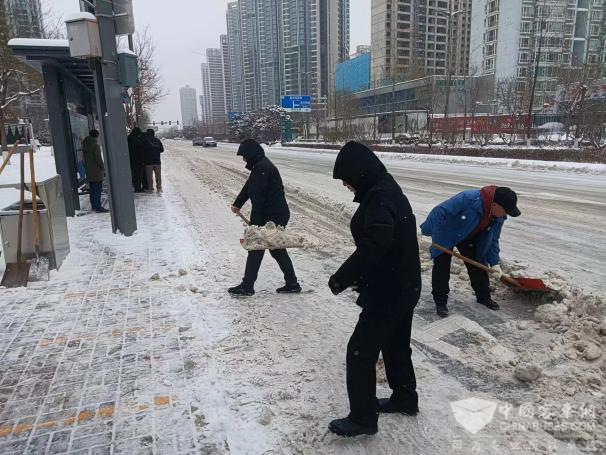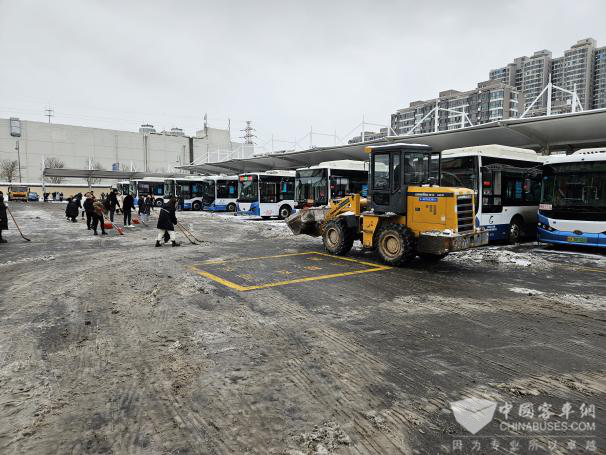 2024年2月20日,暴雪初降,对生产生活带来严重影响,为有效保障运营生产和市民出行安全。太原公交严格落实“门前五包”责任,及时防范应对,积极组织干部职工通过抛洒融雪剂、铲车铲雪等方式,对场区、站台、危险路段等范围内的积雪进行清理,确保人员、车辆出行安全畅通。