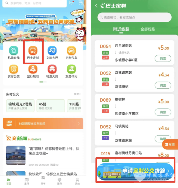 市民乘客可前往成都公交APP“巴士定制”板块,点击“申请定制公交线路”功能,申请开线哦!