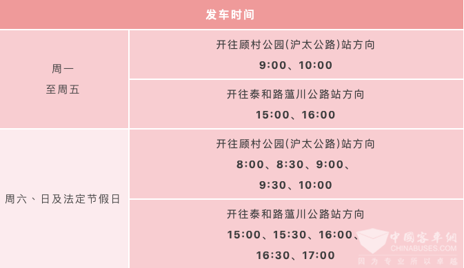 该条定制班线从宝山7路、宝山9路公交线的泰和路蕰川路站(轨道交通一号线共富新村站1号口)出发,直达顾村公园(沪太公路)站(顾村公园1号门)。