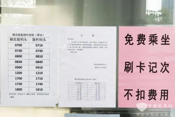 目前,南京棉花堤渡口—江心洲旗杆渡口的轮渡,每天有18航次,两边渡口驿站内都张贴有时刻表。